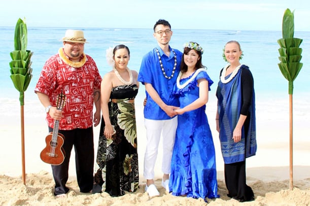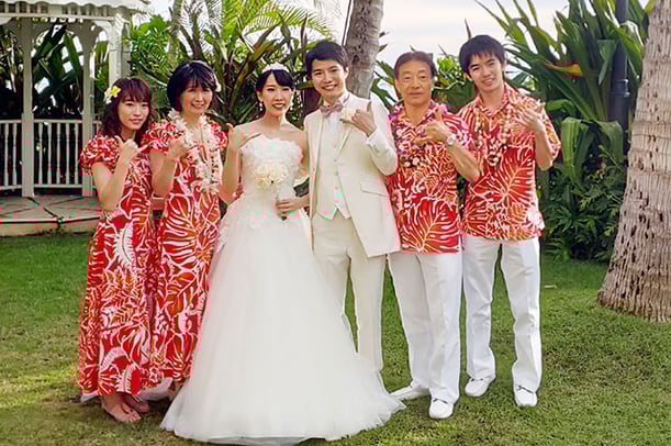 「列席者がお揃なんてどうなんだろう」という不慣れな心配もありましたが、統一感があり、とても良い気分で過ごす事が出来ました。ハワイで挙式される方には絶対ムームーレインボーをお勧めします。本当にありがとうございました。